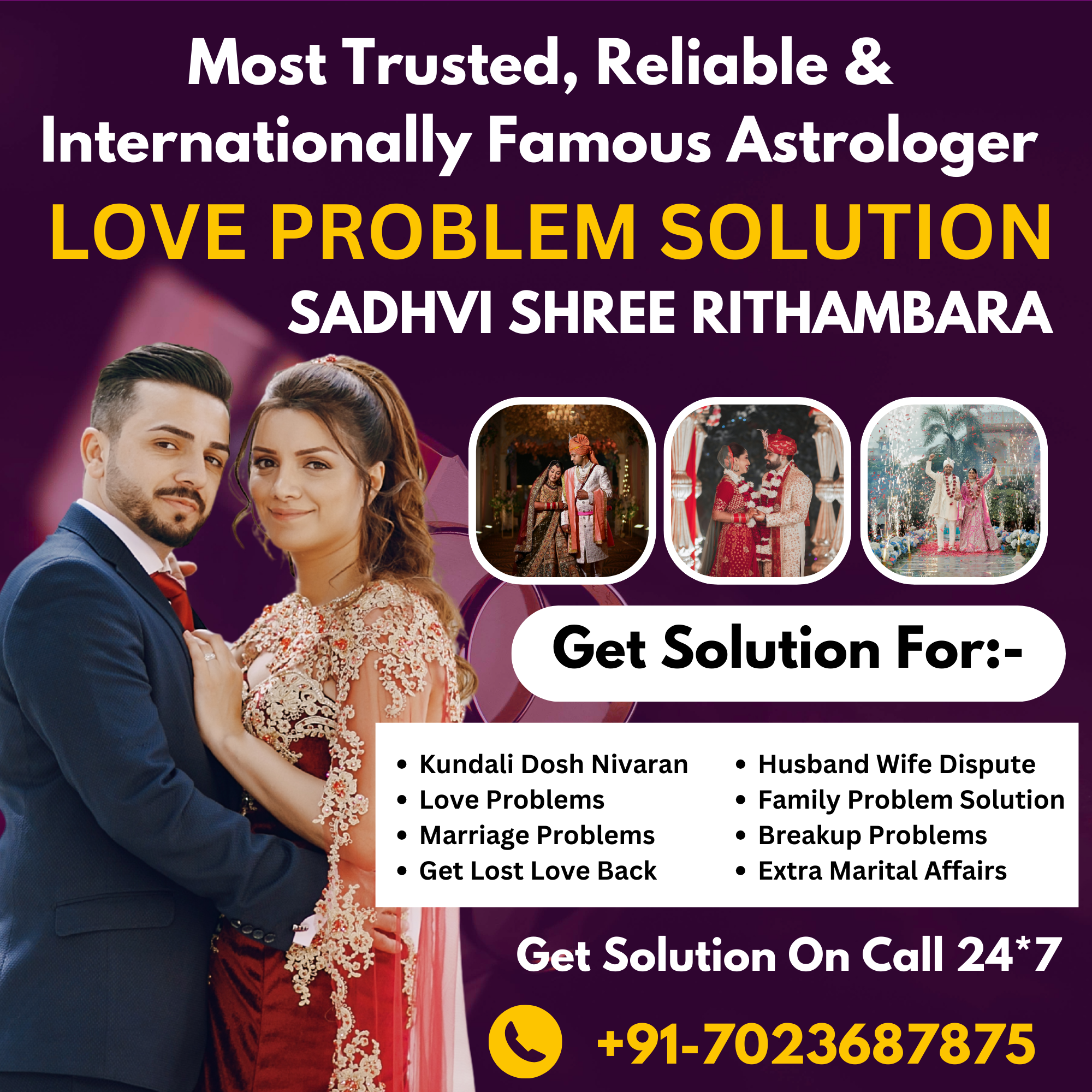 Many people seek her guidance for love marriage solutions, family problems, and career-related issues. Her advice is often sought by those looking for a deeper understanding of their life's purpose and challenges. With her vast experience and intuitive understanding, Sadhvi Shree Rithambara Ji offers personalized solutions that cater to the unique needs of each individual.