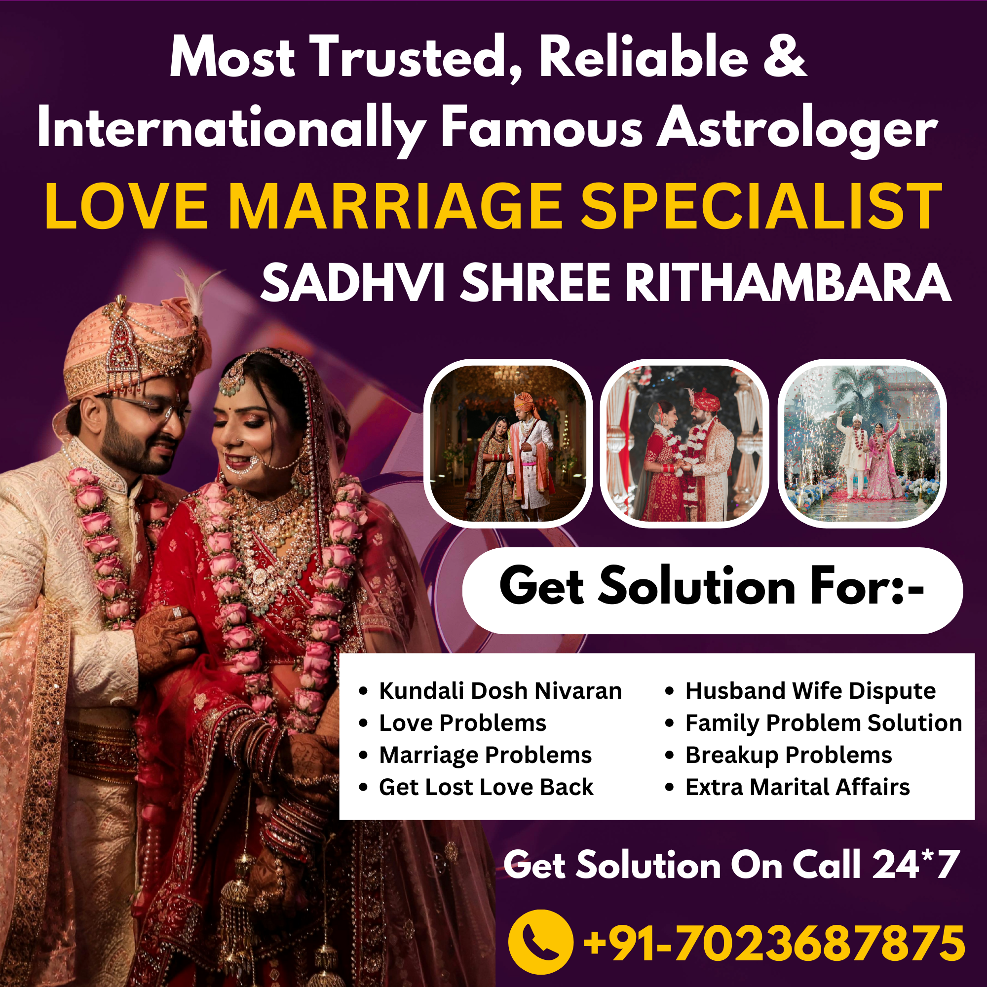 Many people seek her guidance for love marriage solutions, family problems, and career-related issues. Her advice is often sought by those looking for a deeper understanding of their life's purpose and challenges. With her vast experience and intuitive understanding, Sadhvi Shree Rithambara Ji offers personalized solutions that cater to the unique needs of each individual.
